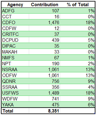 Table 2. Chinook Catches by Agency, District, and Stat Week